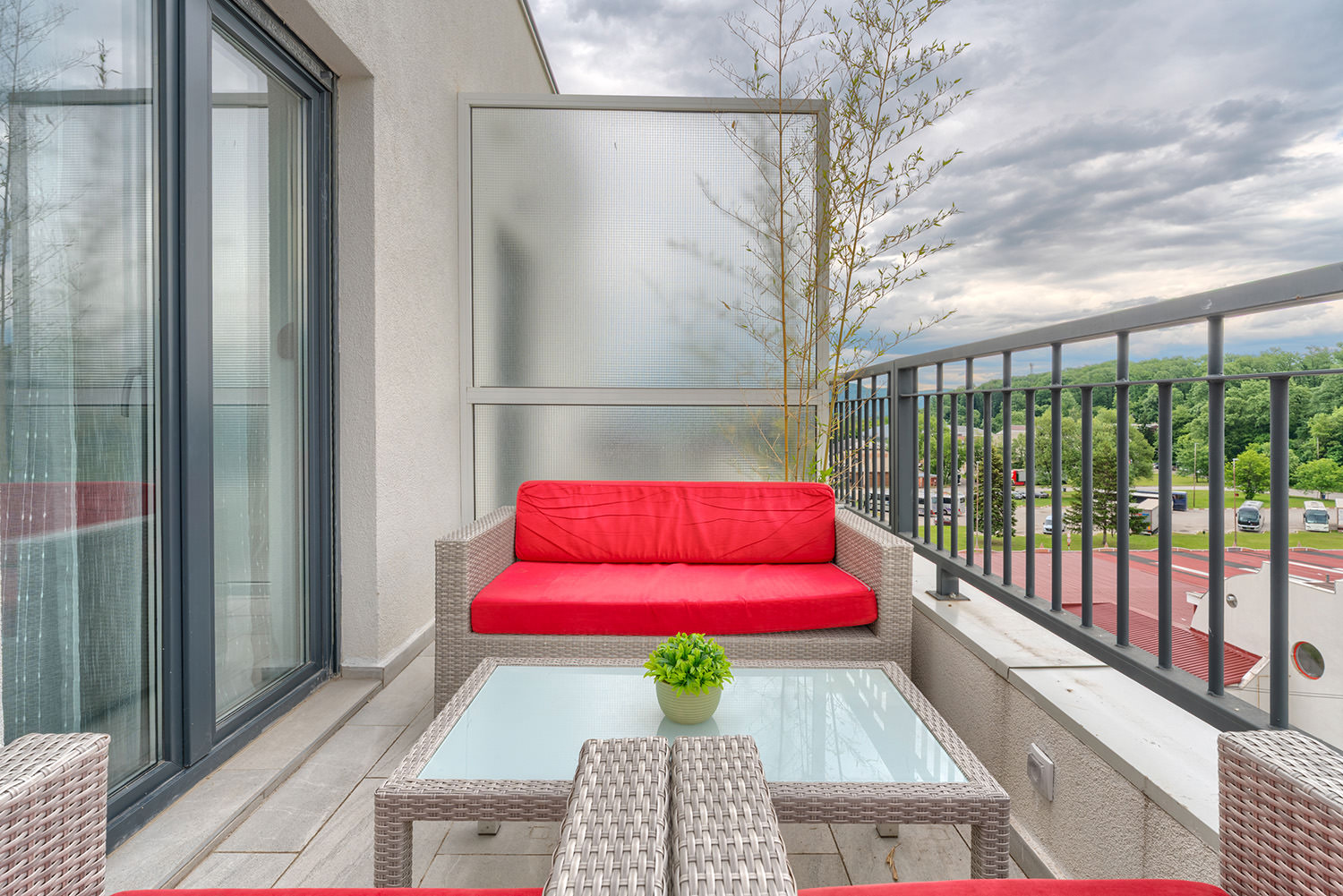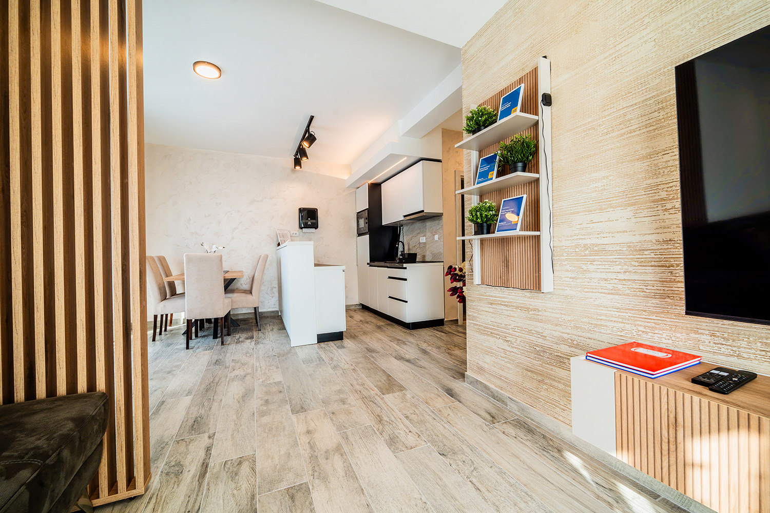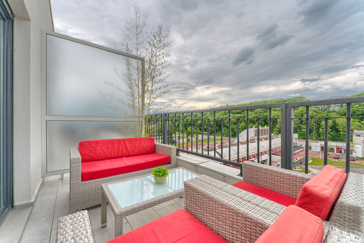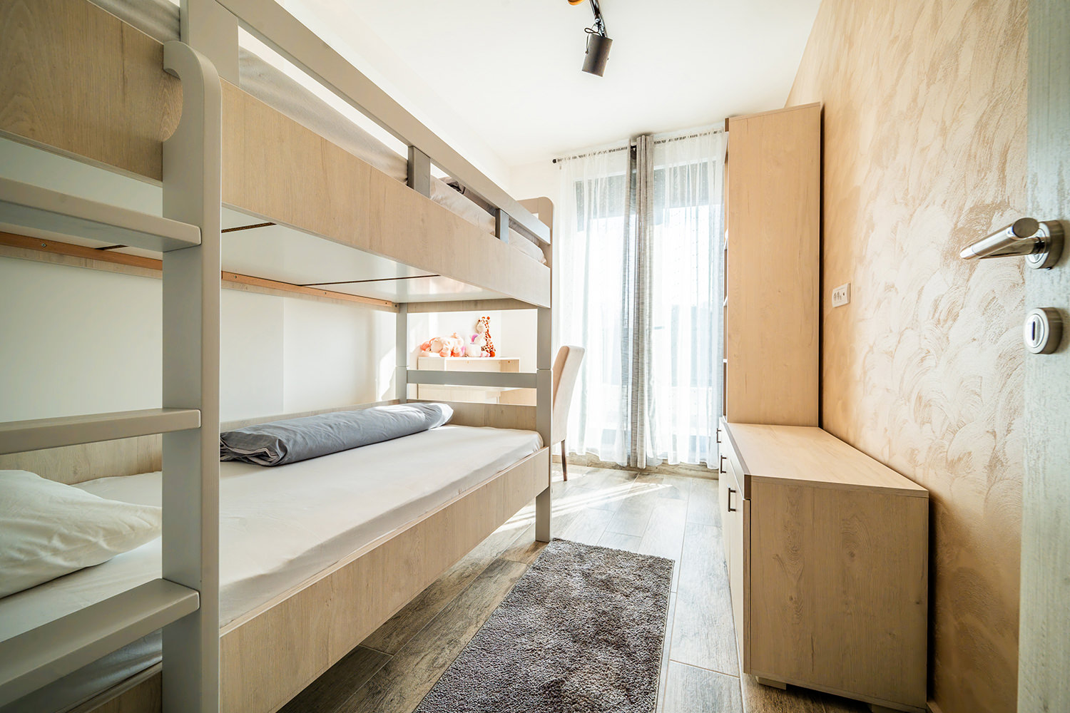 Free Wi-Fi keeps you connected to the world, while private parking ensures a safe spot for your vehicle. A comfortable double bed guarantees peaceful and quality sleep, and the children's room is a favorite spot for our youngest guests. The kitchen area with a dining table allows you to enjoy meals in the privacy of your apartment. The spacious living room is ideal for relaxing and socializing, and the TV with a wide selection of channels offers entertainment and leisure. A special advantage of our apartments is the terrace — the perfect place to enjoy fresh air and a beautiful view.