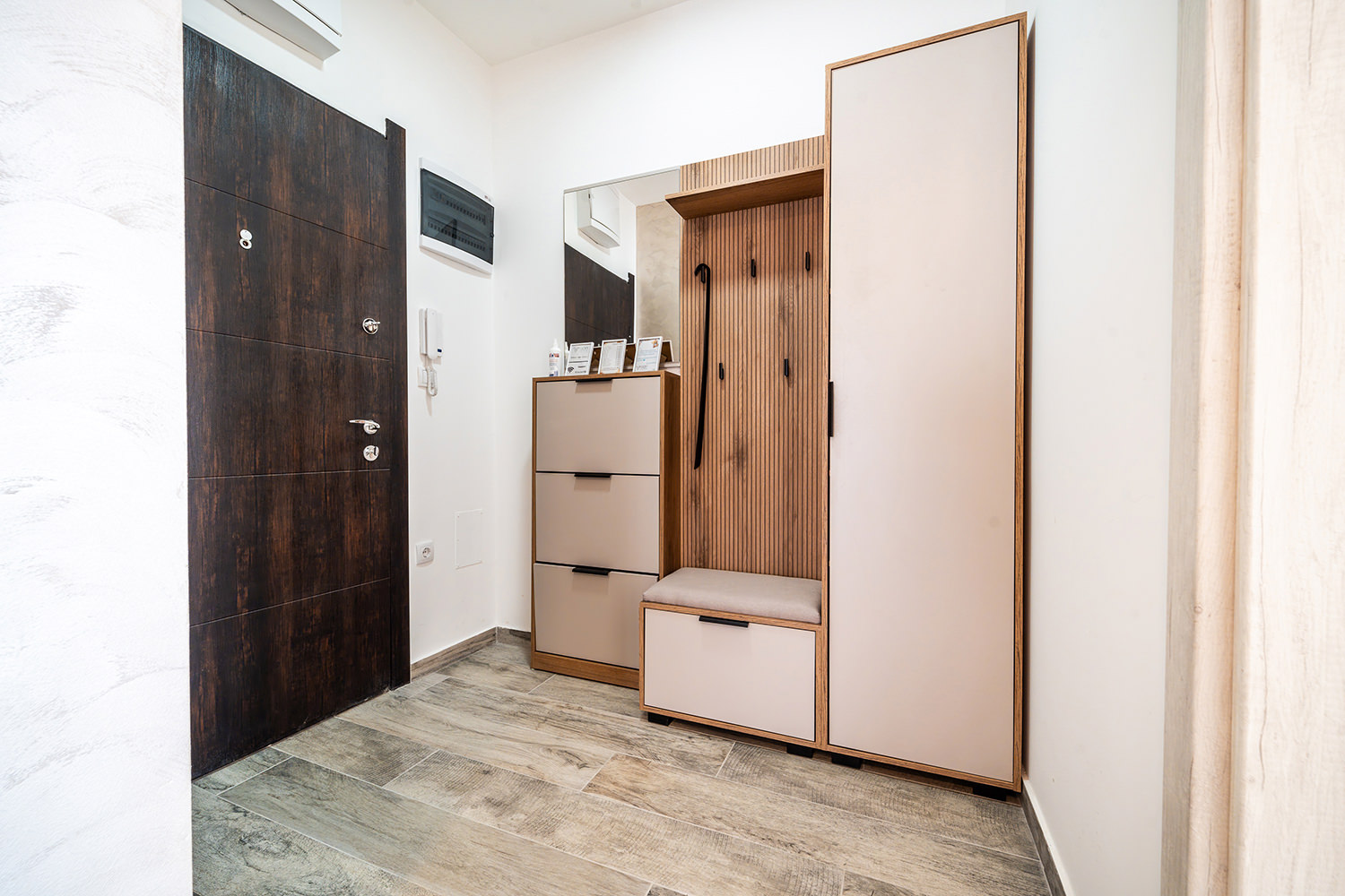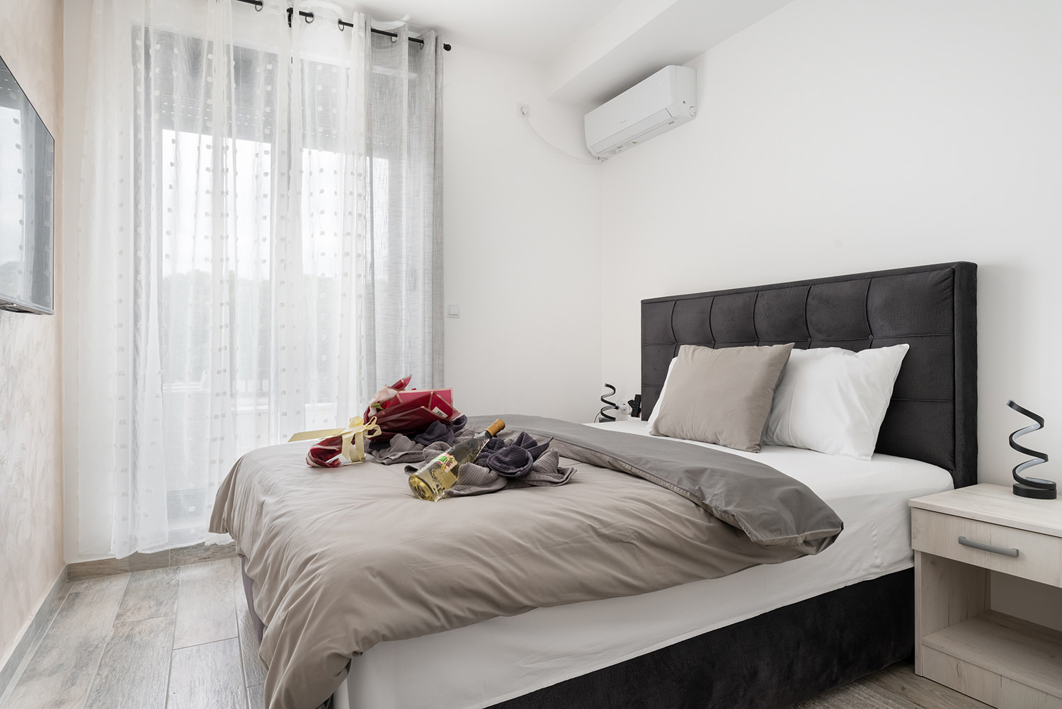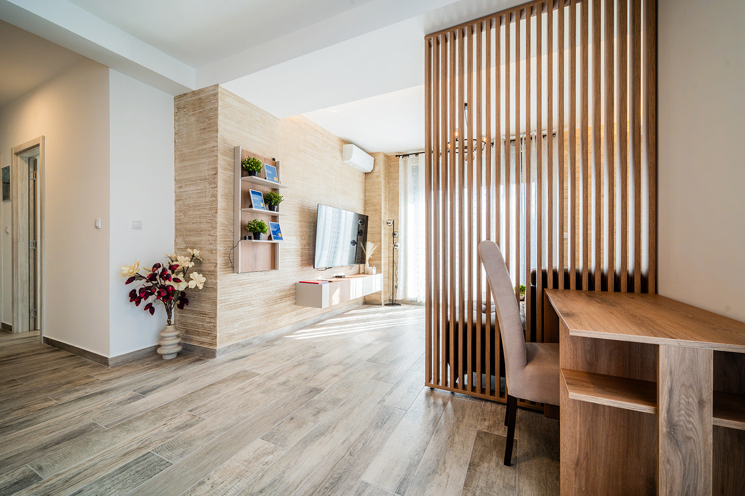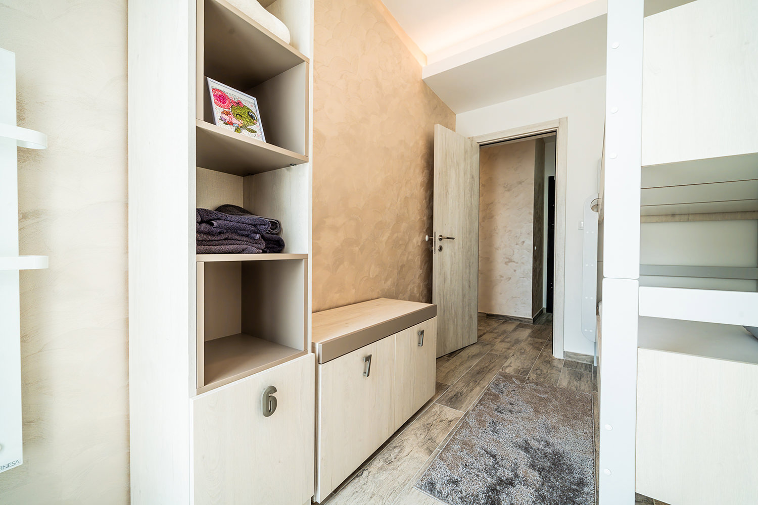 Free Wi-Fi keeps you connected to the world, while private parking ensures a safe spot for your vehicle. A comfortable double bed guarantees peaceful and quality sleep, and the children's room is a favorite spot for our youngest guests. The kitchen area with a dining table allows you to enjoy meals in the privacy of your apartment. The spacious living room is ideal for relaxing and socializing, and the TV with a wide selection of channels offers entertainment and leisure. A special advantage of our apartments is the terrace — the perfect place to enjoy fresh air and a beautiful view.