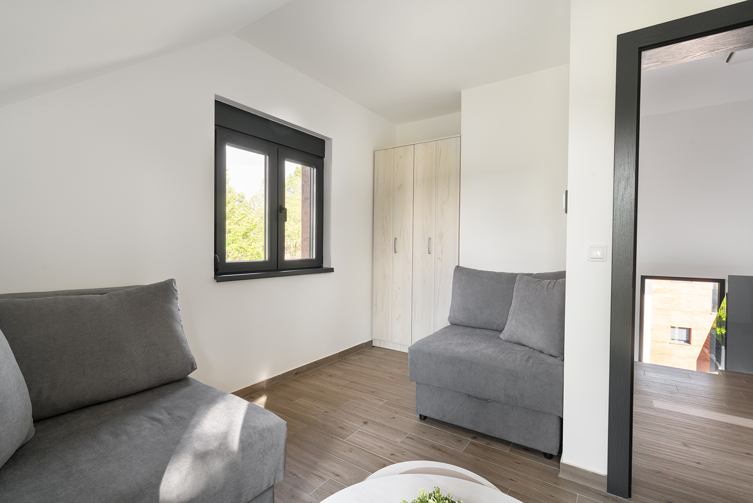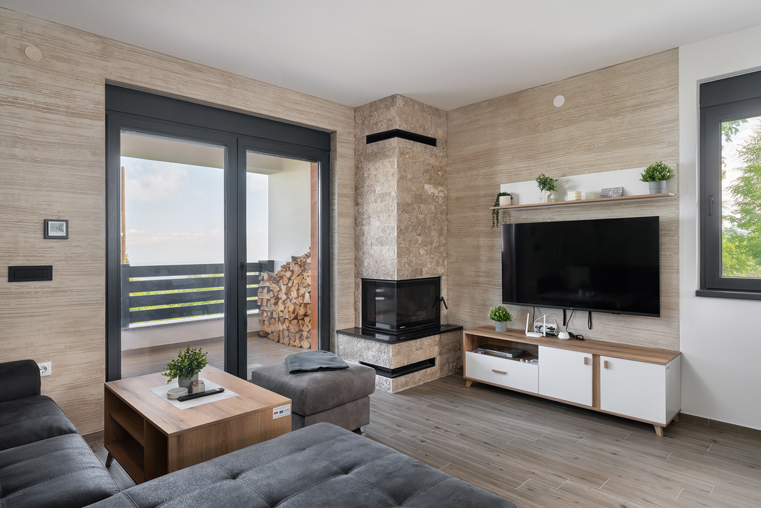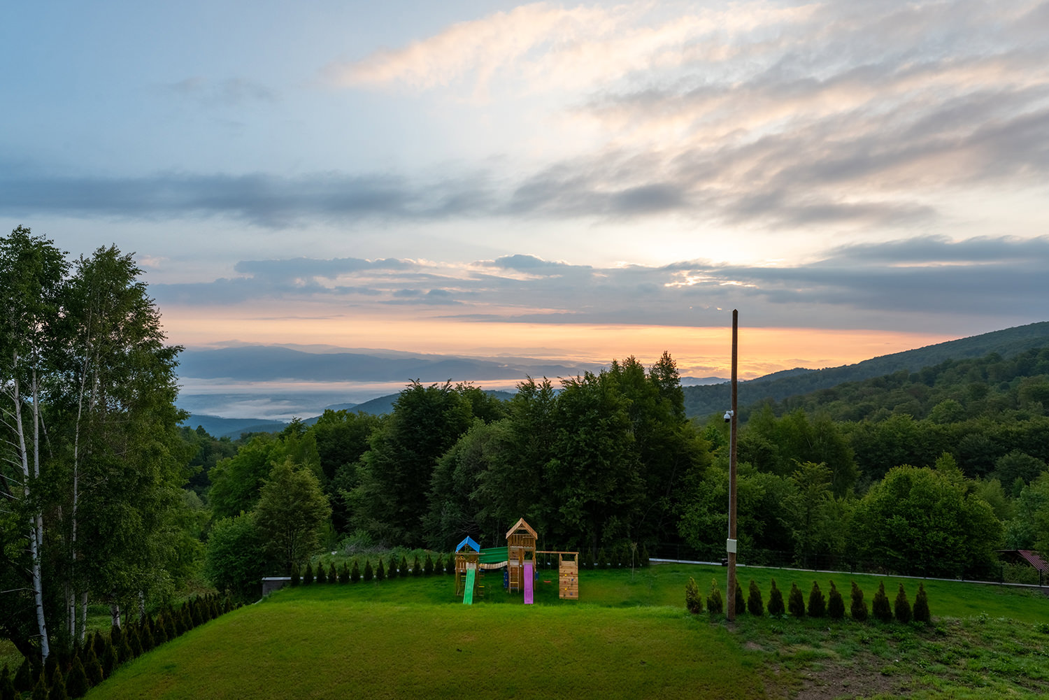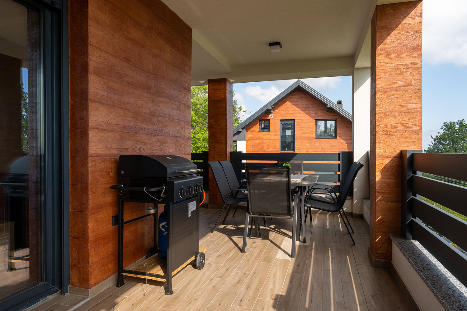 Naša terasa sa roštiljem pruža idealno mesto za opuštanje na svežem vazduhu, poglede na netaknutu prirodu, dok se u dnevnim boravcima gosti mogu okupiti oko kamina i uživati u toplini vatre.