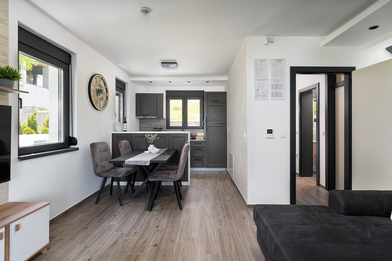 Kuhinje su opremljene aparatima i priborom, omogućavaju gostima da samostalno pripremaju obroke.